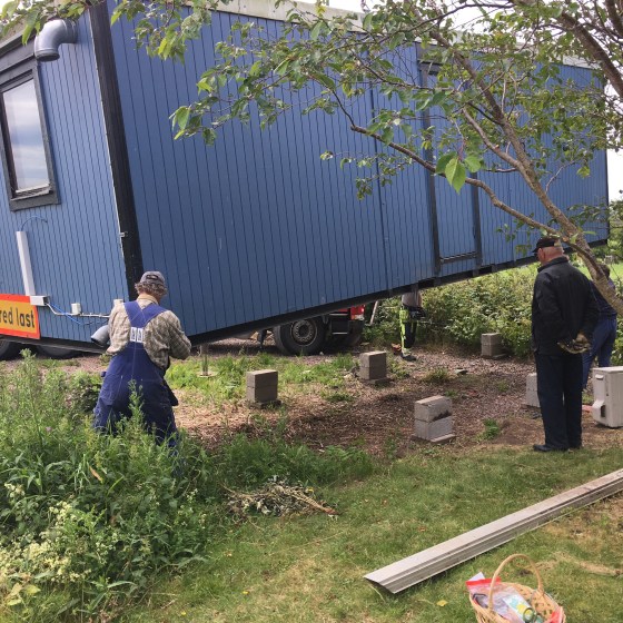 Med stillsam värdighet sänker sig huset ner på sin nya plats. Så otroligt inspirerande att ha ett hus -som man kan flytta! ( om man vill)