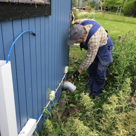 Nästa steg i processen är att installera vatten, ström, värme o avlopp. En sak i taget.