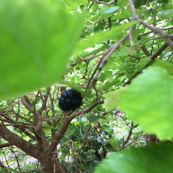 Svarta mullbär , ni får min respekt. De började ge bär tidigt i sommras, samtidigt som körsbären. De har hållt på och ge bär ända sen dess. Bara de svarta mullbären. Smaken har ändrats mycket under säsongen. Först supersöta, nu är de mer av syra i smaken. Nu tror vi att de snart tänker sluta ge bär, för i år.