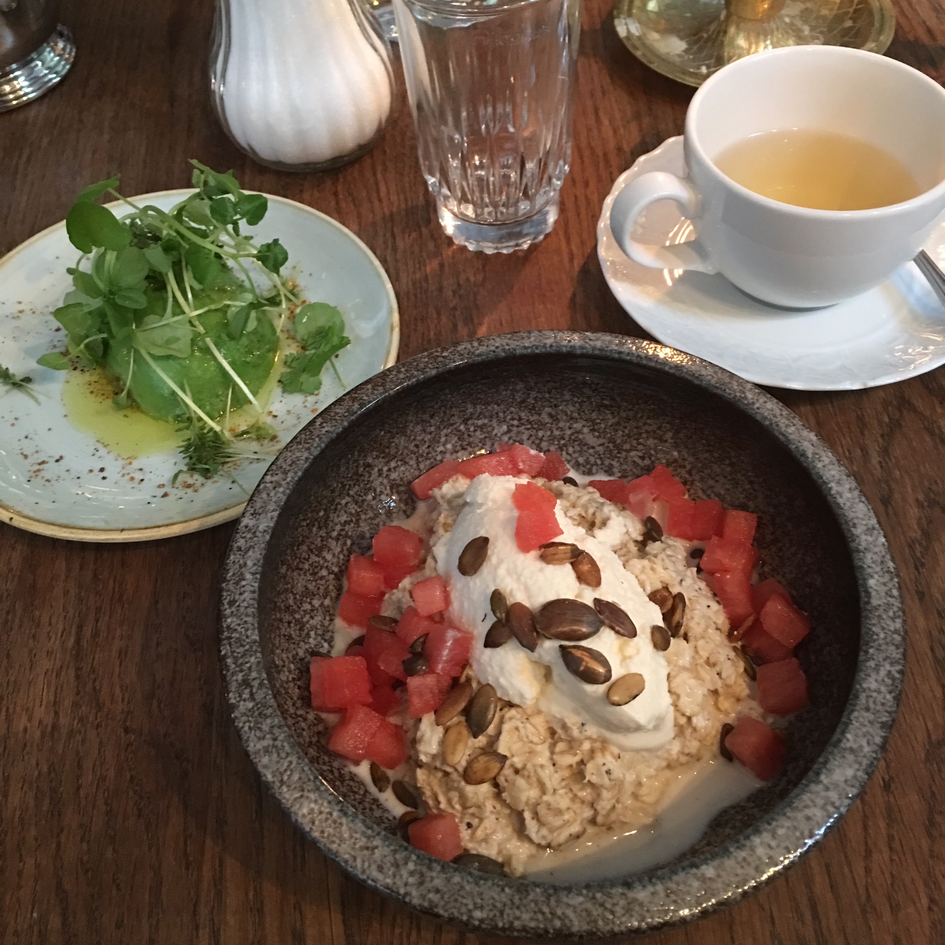 Hur ser trendig Stockholms frukost ut? Kanske så här: Over Night Oat och en halv avokado med sköna kryddor. Mättande poetiskt. I natt har Ganga sovit i Gamla Stan, det kändes ju lyxigt värre, men inte dyrare än nån annans stans, (precis som frukosten -inte dyrare än att äta något annat).