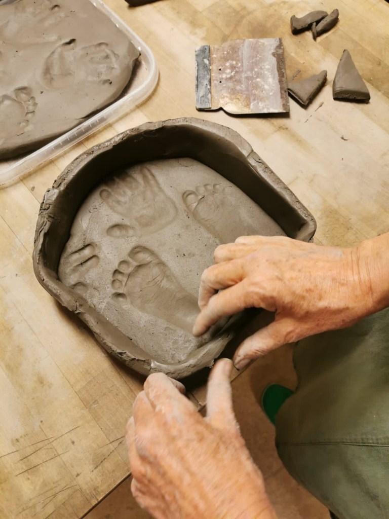 Vi har gjort fot och hand avtryck, så klart! När vi har både lera o gips hemma.