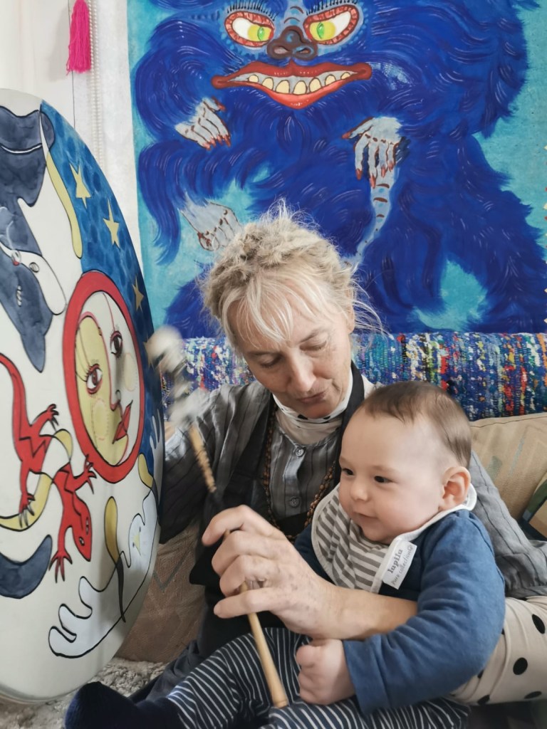 Mormor Ganga sjunger på sitt vis. ( obs ser du draken bakom Haha ❤️) Korpen kom i den fysiska verkligheten här hos oss och välkomnade Eden så tydligt, det var ju tvungen att besjungas.