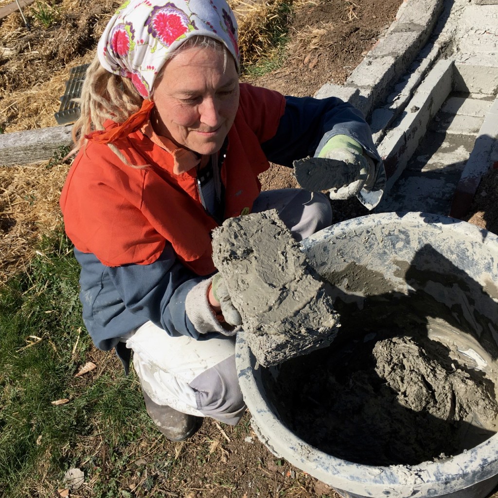 se på detta extreeemt nöjda uttryck. Vi är igång! Vi bygger ugn! Vi har hjärta, fötter och väder på vår sida, plus mycket planerande bakom oss.