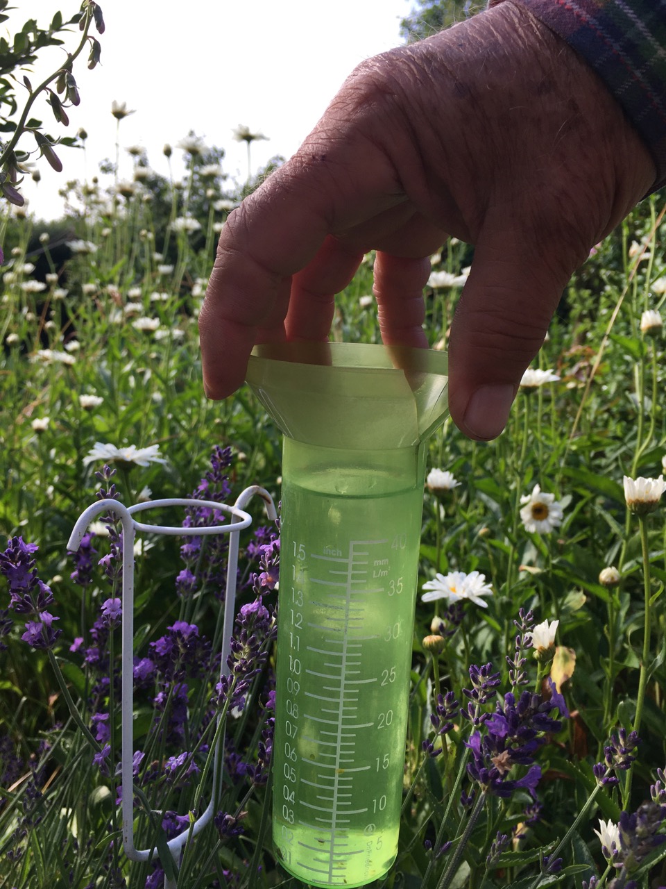 här i Östergötland har vi haft eldningsförbud nu på försommaren. Plötsligt hände det, ett helt märkligt perfekt anlände ett REGN. Tätt, lagom intensivt utan att förstöra någon gröda, varken för oss eller bönderna, dundrade regnet in och vi har ALDRIG haft en så välfylld regnmätare! Totalt kom 62 ml på ett dygn och jorden bara söööög upp det och allt återhämtade sig.
