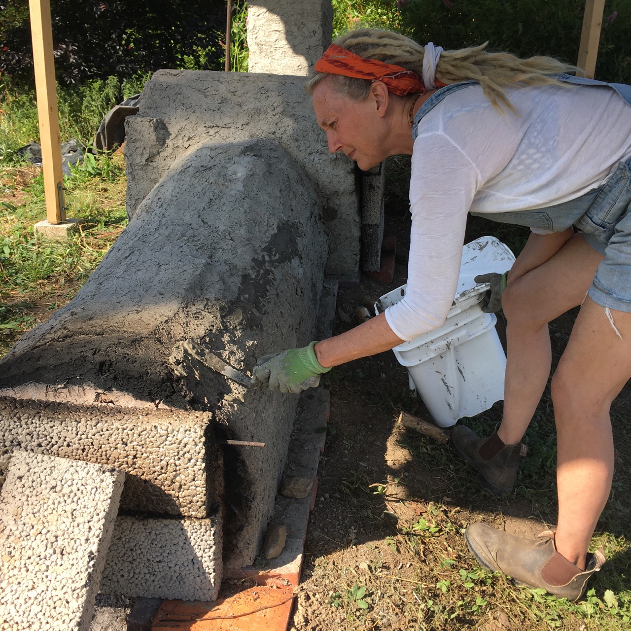 vi tänkte oss en lång dag och med fokus på elden, så den skulle ha bra tempo, så vi grillade vår mat på plats och hade det helmysigt. Ugnen blev långsamt varmare även på utsidan. Insidan hade redan när vi förvärmt den, någon vecka tidigare, gått över till stabil gul färg, som visade att den blivit tegelbränd inuti.