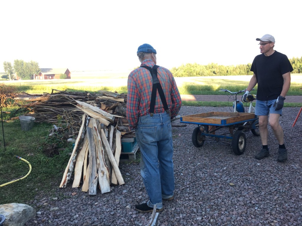 Sen kom grannen, vi hade börjat bli något rastlösa, för vi såg ju hur ugnen visserligen började glöda innuti, men inte tillräckligt för att påverka godset, våra raku-alster. Då hade vi bara eldat med gratis ved, som vi fått av en annan granne och som var gammal och av sämre kvalite. Egentligen hade vi tänkt köpa ut ved av vår närmsta granne, som brukar förse oss med ved i alla lägen. Nu bestämde vi oss för bästa björkved, så smal vi kunde få och i bra längder, som passade med eldkammaren; långa och lite kortare att komplettera med.