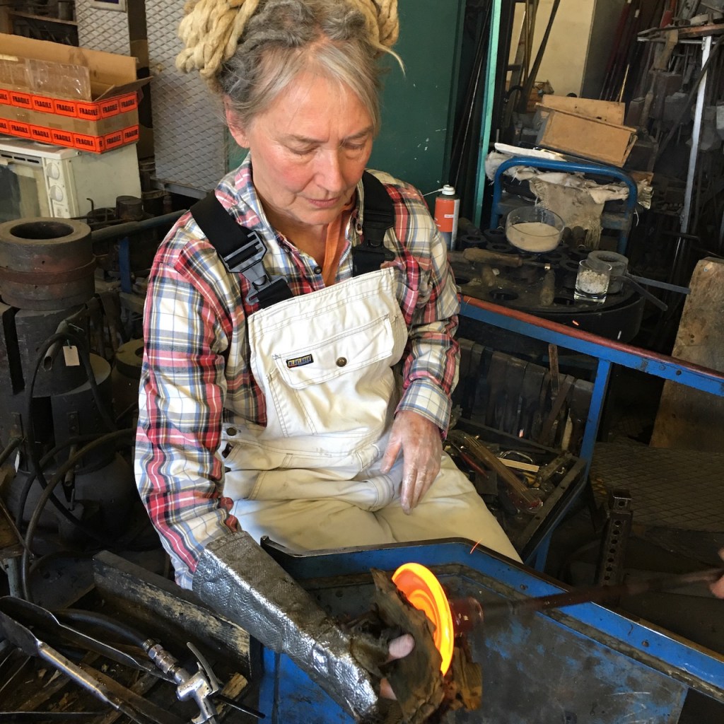 Gert är pensionär, men tänker sig jobba ett par år till i hyttan. Han visar runt lite bland projekten. Det är dop-ljusstakar till kyrkan, glas till en samisk konstnär som sen jobbar vidare med glaset och skriver in texter…. det var mycket i ”Swedish blue” populärt i Svenskbygderna i USA.