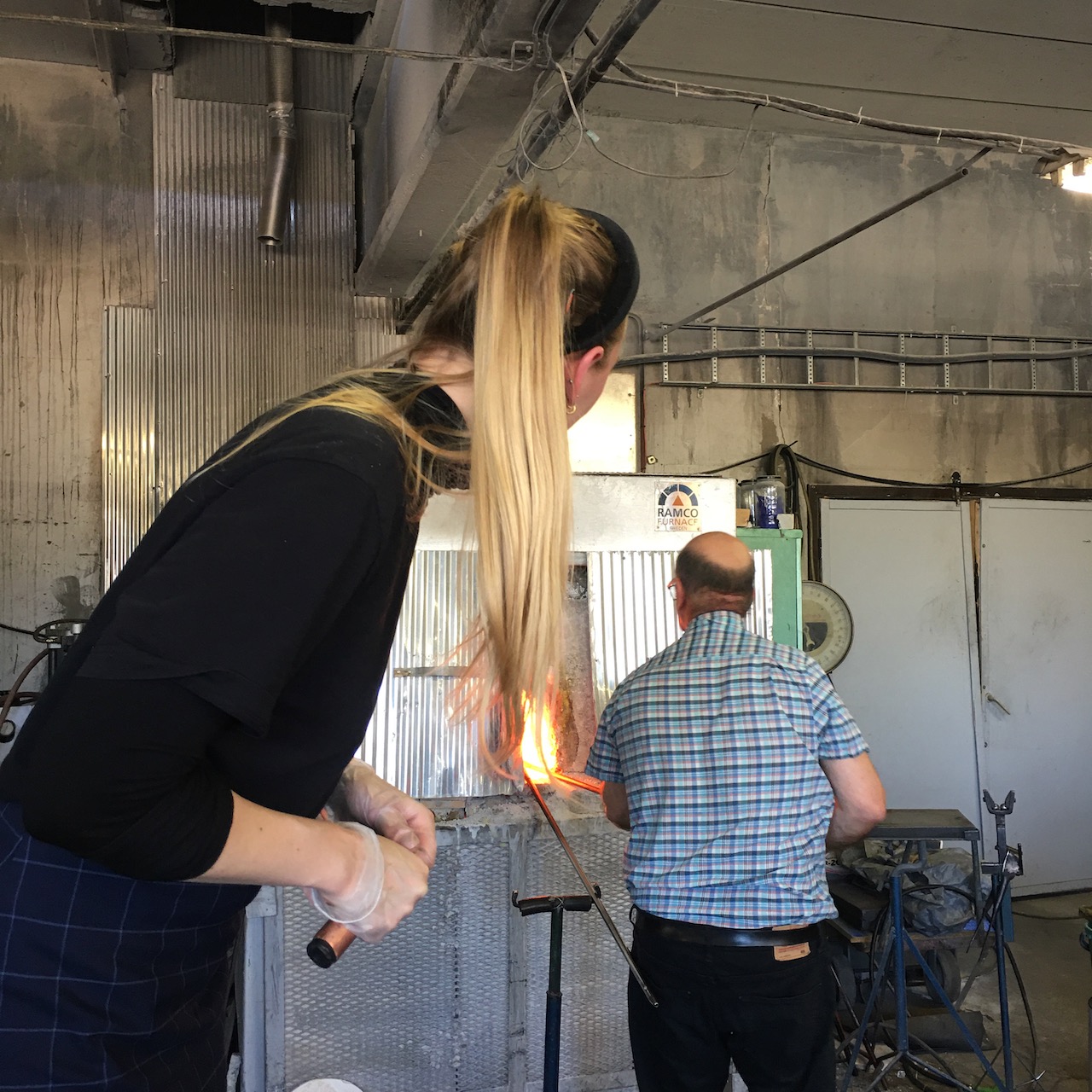 Vi är på det lilla glasbruket i Mantorp. Fulla av förväntan. Det är Ganga och Rurik tillsammans med Rita och Marcus. Vi är här för att fira Ritas födelsedag. Vilken lyckoträff att hyra prova-på i en timma på en glashytta!