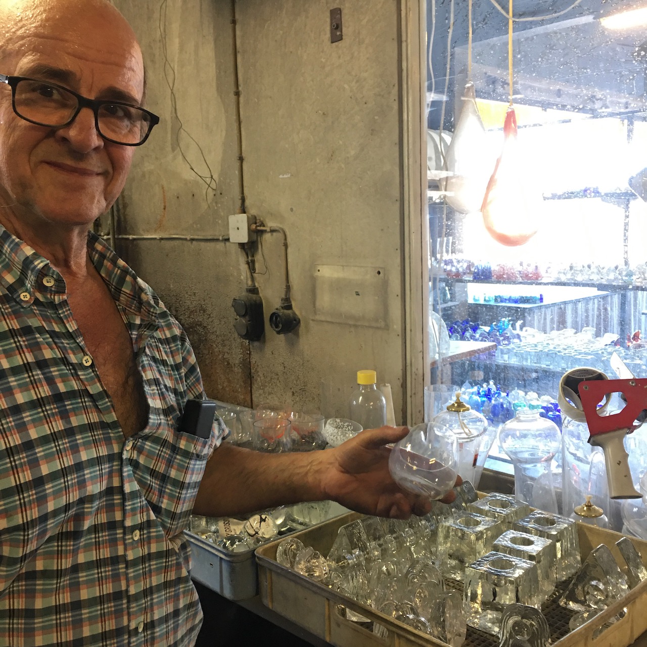 Rita köper med sig en stor handblåst skål innan vi lämnar -det var förvånande billigt, tyckte vi och bugade. Det rekommenderar vi. Åk dit o köp glas!