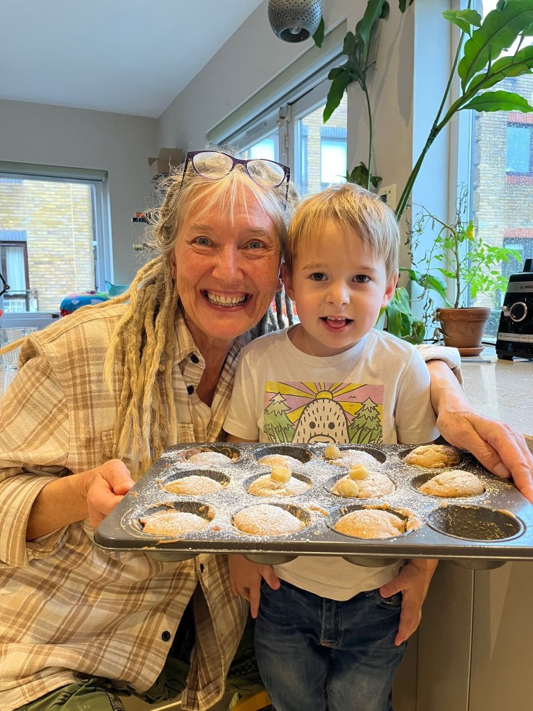 Så himla mycket glädje att få göra något på riktigt. Det var en stolt muffinsbakare. Och en stolt mormor.