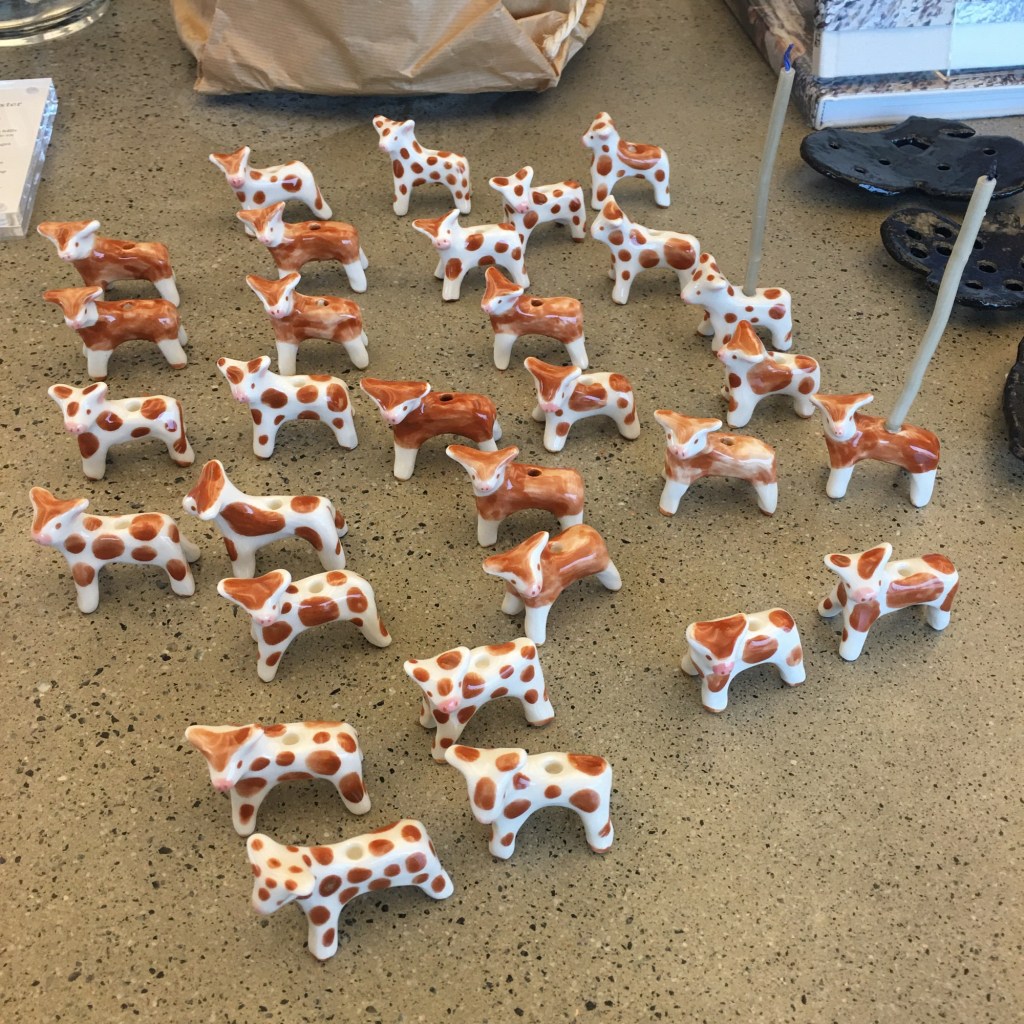Ovan lite bilder bland de mindre skulpturerna. Krabbklor i storformat och Dalahäster är ju så sööööt! Och Ruriks kor fick inspiration u de små brunprickiga kalvarna. Surfiskarba i porslinslera var imponerande och ful-vackra.