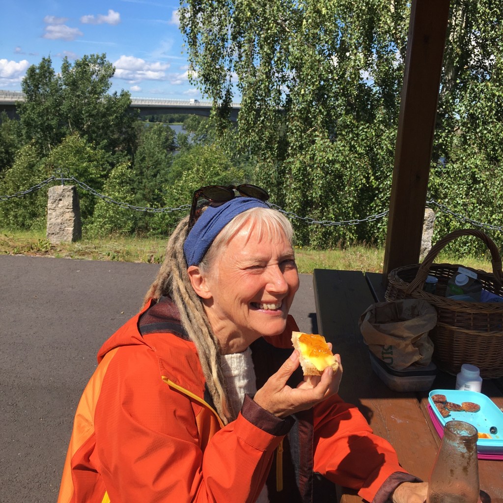 Nu känner vi det som riktigt tant o farbror utflykt, men när det funkar är det ju bäst. Utflyktsväder och bilen kör mot Örebro. Perfekt att stanna på den stora rastplatsen vid den stora bron vid Hamnarsundet. Fram åker stora korgen med egna frukostmackor o smothie. Känns ju tidlöst mysig, som mor och far eller mormor och morfar ute på äventyr på vägarna. Fåglarna kvittrar och trafiken surrar.