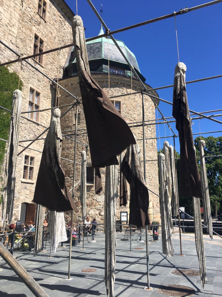 Det fanns en önskan från arrangörerna att fånga nutiden, att våga lyfta svåra frågor ( även om glad-konst också fanns.) En riktig ”missa-inte” fanns framför slottet. insvepta i tyg, indränkta i betong: tungt fladdrar unga flickor som enligt Irakisk lag fråntas rätt till eget självständigt liv, vid ung ålder. Man stod där och kände sorgen.