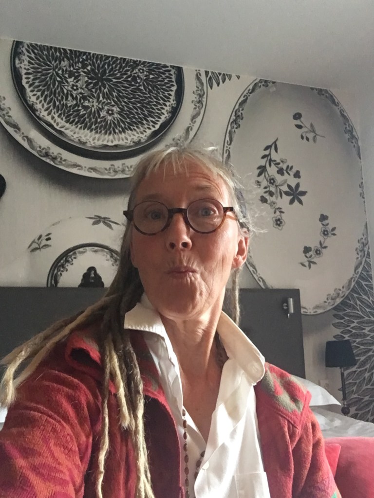 Mycket förväntansfull, må jag säga. Nu ser vi ju på eventet utifrån Rita, som har jobbat med det här projektet i flera år, på flera sätt, i olika tempon o material. Till och med Ganga har en liten koppling, eftersom Rita har en del detaljer i porslinslera som är gjorda i vår studio. ( ps kolla Ruriks axel, vi hittade superfin tweedkavaj på Vintage i Gamla stan, tidigare på dan) Scottish wool👍👍.