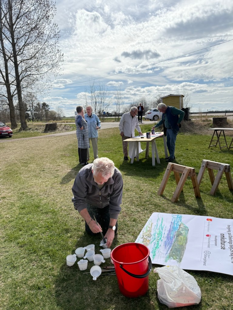 Tidigare på dagen var det samling hemma hos Lasse Frisk. Vi kom, ett gäng ur Omkultur med färg o penslar och målade loss på ett gäng stora affischer för vår Konstrunda.