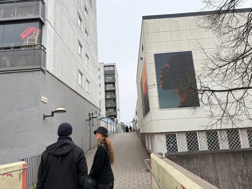 Vi fick göra en vandring till andra sidan Husby, kändes det som. Vi kom till landet, och där låg Husby konsthall.