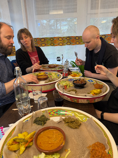 Som pricken över i, hittade vi en restaurang som var precis vad vi drömde om. mums. Afrikansk mat. Med härliga, jästa, sega, jätte pannkakor ( tror teffmjöl). där satt vi o åt gott med fingrarna mmmm