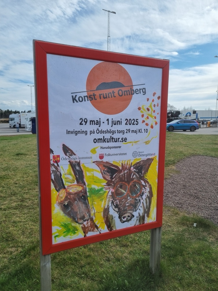 Nu kommer de att vara synliga runt om i Ödeshögs kommun. Håll utkik. Vi får ju visa Gangas bidrag också. Två konstrunde-besökare från skogen: en hare o ett vildsvin. Kan du läsa tydligt nu, tiderna för konstrundan? Notera -och kom!!