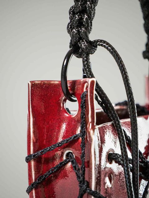 Detta är en detalj av en väska – i porslin och remmar. Nästa helg är vi i Stockholm – om du är i Stockholm, kom du med! Rita, Gangas dotter är en av fem kläddesigners som släpper sina kollektioner och det sker på Korvfabriken. Ja, vilket namn, men nu görs där ingen korv längre, det tillhör platsens historia -nu härskar kulturen.
