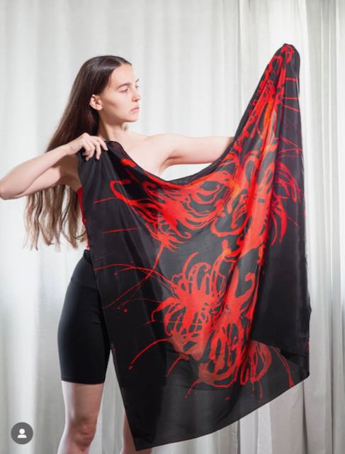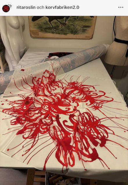 Här är ett tryck. Inspiration från en spindellilja. Kollektionen är Ritas debut och heter KUSARI.