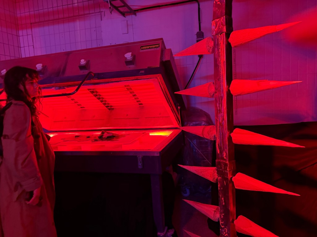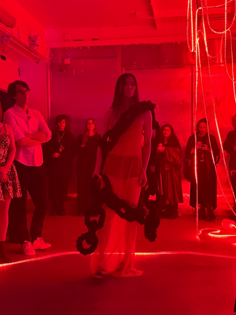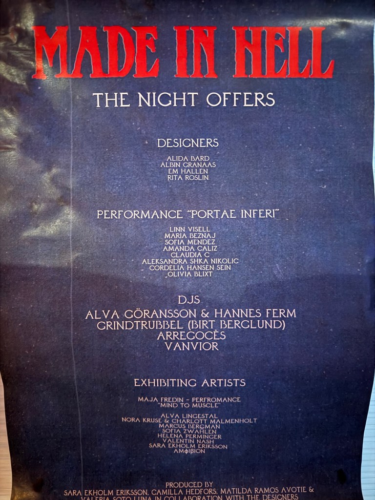 Det är Gangas dotter. Rita Roslin, som härmed släppt sin debut i ett samarbete med fyra andra designers, några från Bäckmans, några från Oslo Konstakademi. Att släppet var den 1e november, satte väl ett avtryck på utformningen av kvällen.