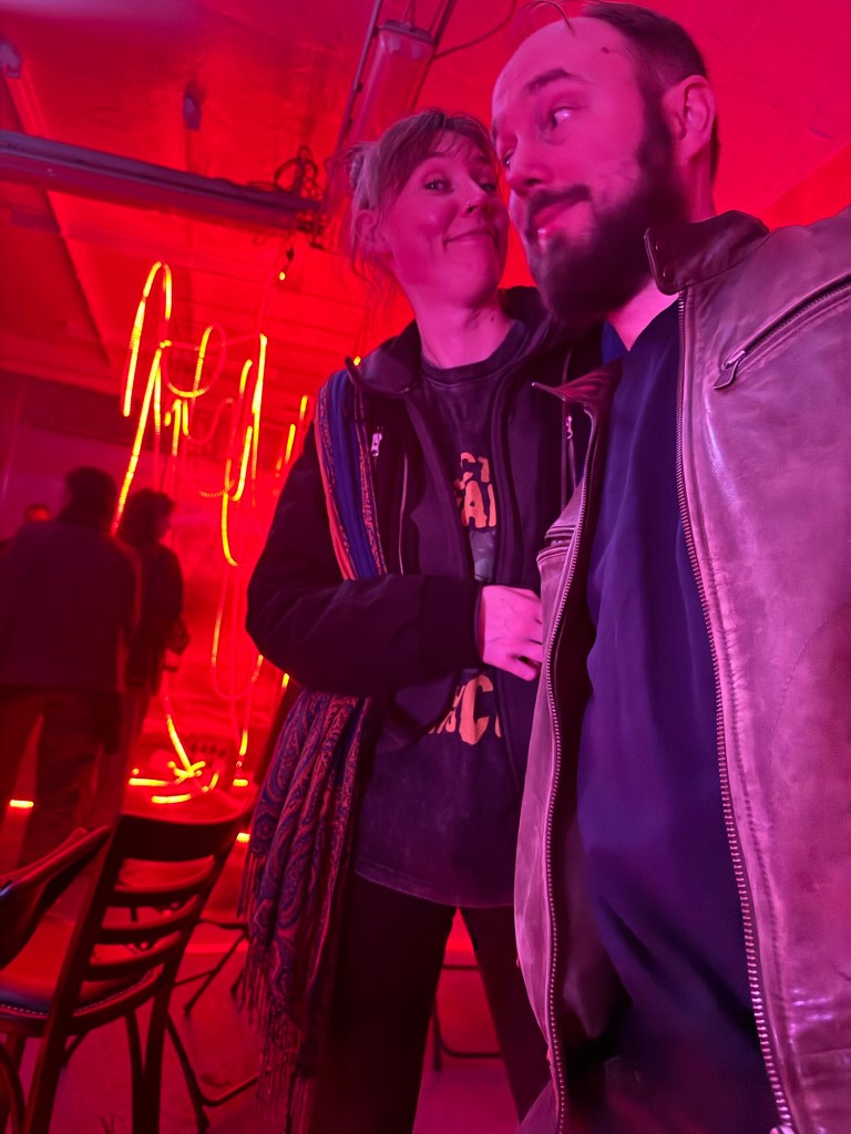 Vi rör oss ut i natten, coola neonljus berättar för oss att det som en gång varit ett område av blod o slakt numera innehåller massor av konst o kreativitet.