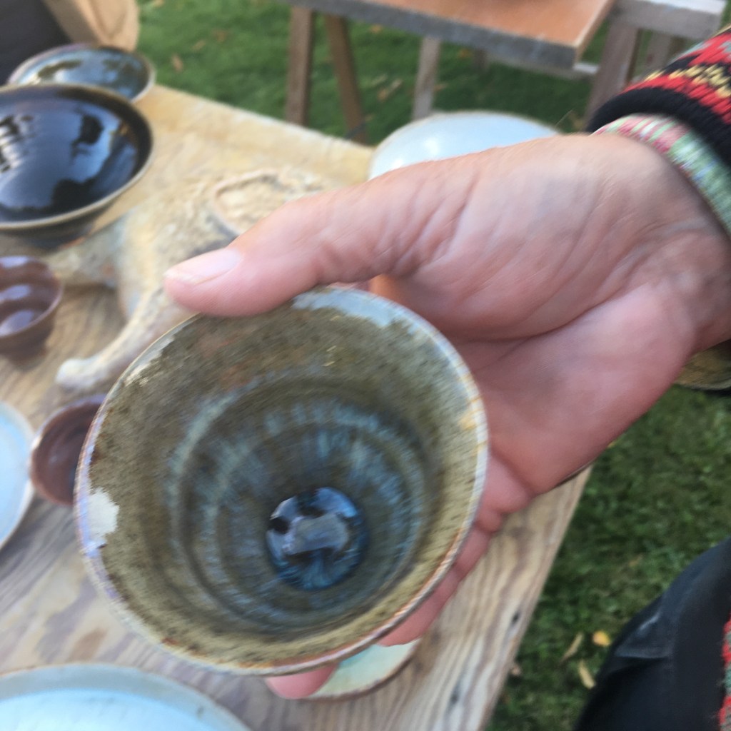 Axel var en av deltagarna i vedeldningen och vi fick köpa en lite vacker mugg av honom. Han hade varit och studerat keramik i Kina och kom hem med en gåva u-form av en näve jord som han hade i glasyren på några större pjäser.