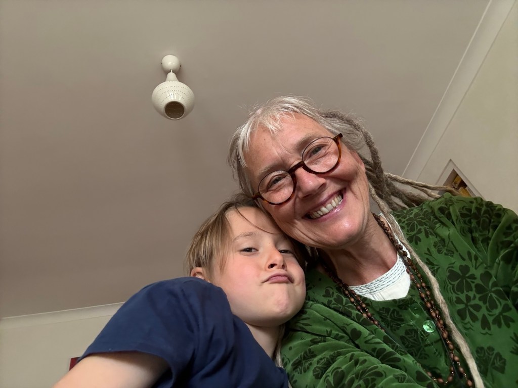 Gott att äntligen få träffa sina barnbarn igen, säger Ganga, och att de kan vara så pigga efter en hel dag i skolan!! Fullt spring.