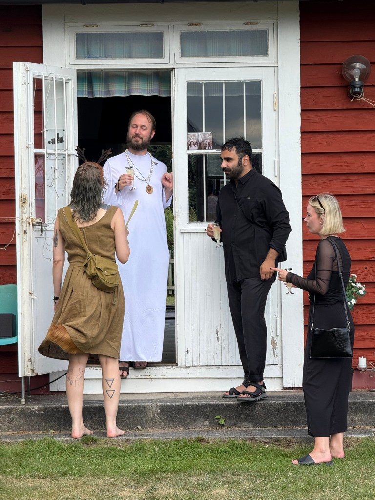 Sen blev det 40-ingar av Siri o hennes tre vänner ( en är livskamraten) det firades med festen man väntat på i sådär 35 år. Vem vill inte gå på en Ocult fest!!! Avslutades med rituellt bad i Sundet. Kanske var det sommarens bästa dag/natt. Ljummen, stilla o perfekt.
