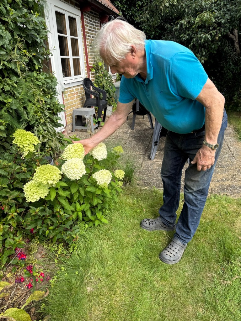 Det var besök hos föräldrarna också. Rosemarie 85, är inte så rörlig längre, men hänger med . Gunvald 90 är ett under av vitalitet. Ganga hängde med ut o kollade på odlingarna och viltplanteringarna. Far går före och pratar o visar.