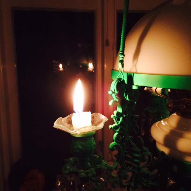 När huset var rent sprang Gangas ben upp på vinden. Ner kom julljusstakarna. ”OK lite tidigt, ( en vecka  innan advent, sådär)  men nån måste ju stressa dom andra, hehe” Nu lyser julljusen i vårt hus. Men… det lyser där ute också…