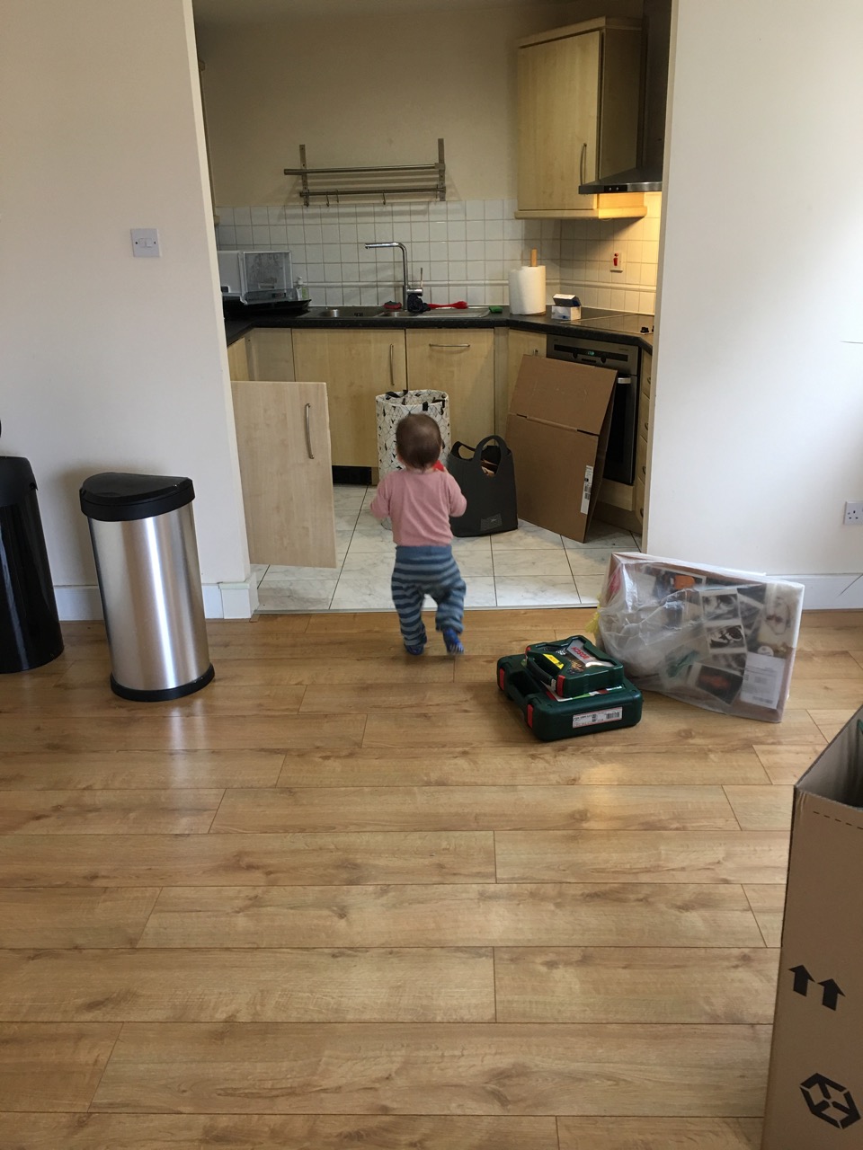 Kändes ju bra att kunna vara med och hjälpa till. Hela det förra hemmet nedpackat och ett litet kök byttes till ett mycket större, vilket ju är jätteskönt, speciellt om en har småbarn!