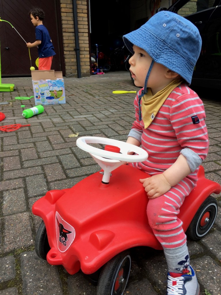 Mormor (Ganga) går ut med Eden. Självklart vill Eden genast gå direkt till en röd leksaksbil, tack och lov, erbjuder föräldrarna honom att låna den. Eden satte sig genast på den och satt sedan där, helt förtrollad av allt bus som de andra lite äldre barnen höll på med. Allt var såååå spännande för en liten ettåring.