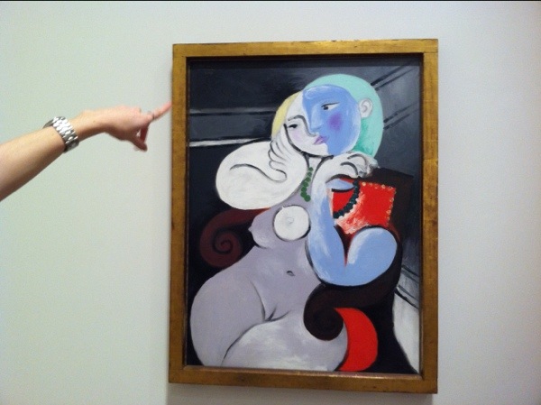 Picassos målning av kvinnan som han då hade ett hemligt förhållande med. Stilla sinnlighet -och ansiktets delning… Kan man tolka som att det är Picasso som ömsint närmar sig och kysser sin älskade.