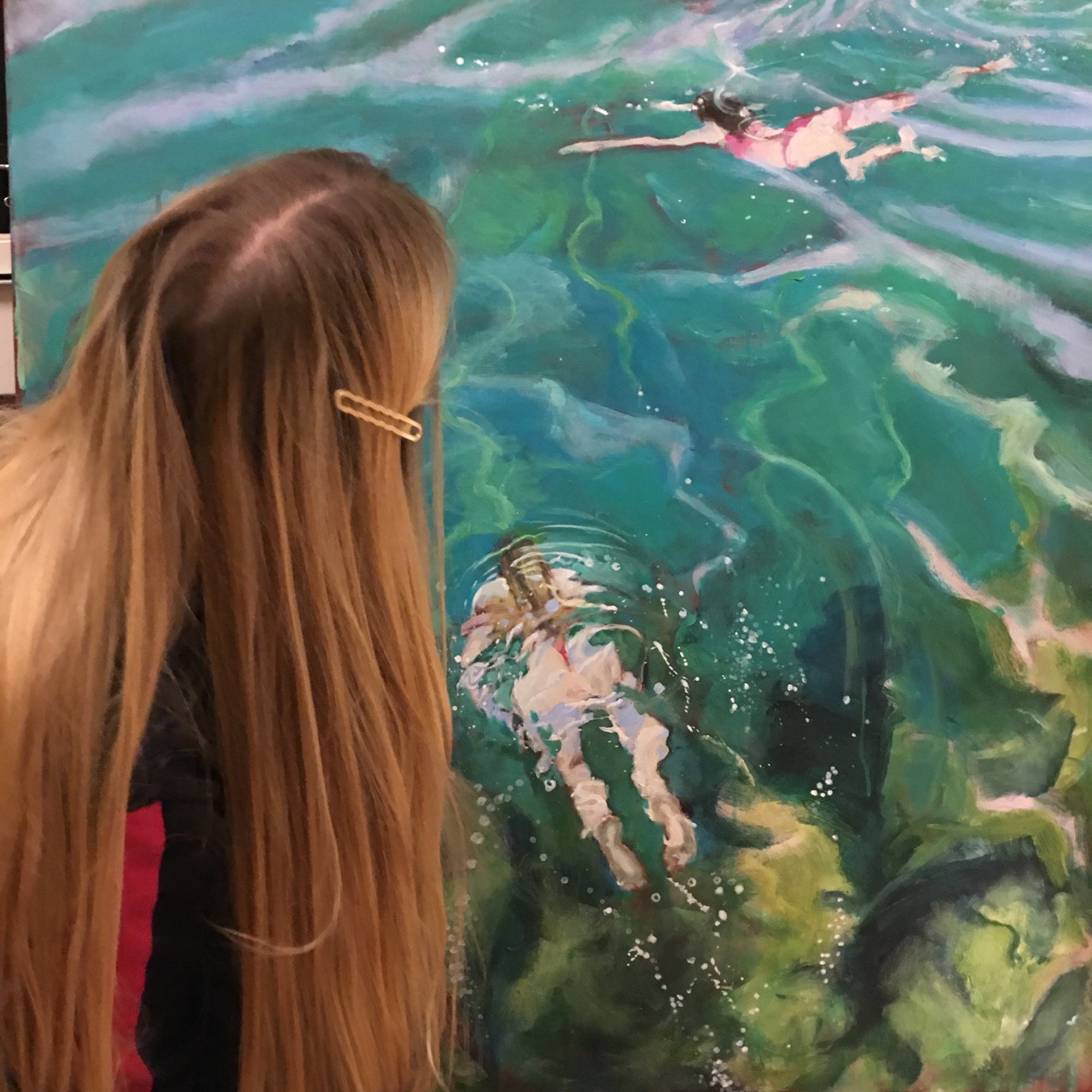 I vardagsrummet står just nu en nymålad bild. Ganga jobbar med Vättern. Rita och Frida har varit modeller.