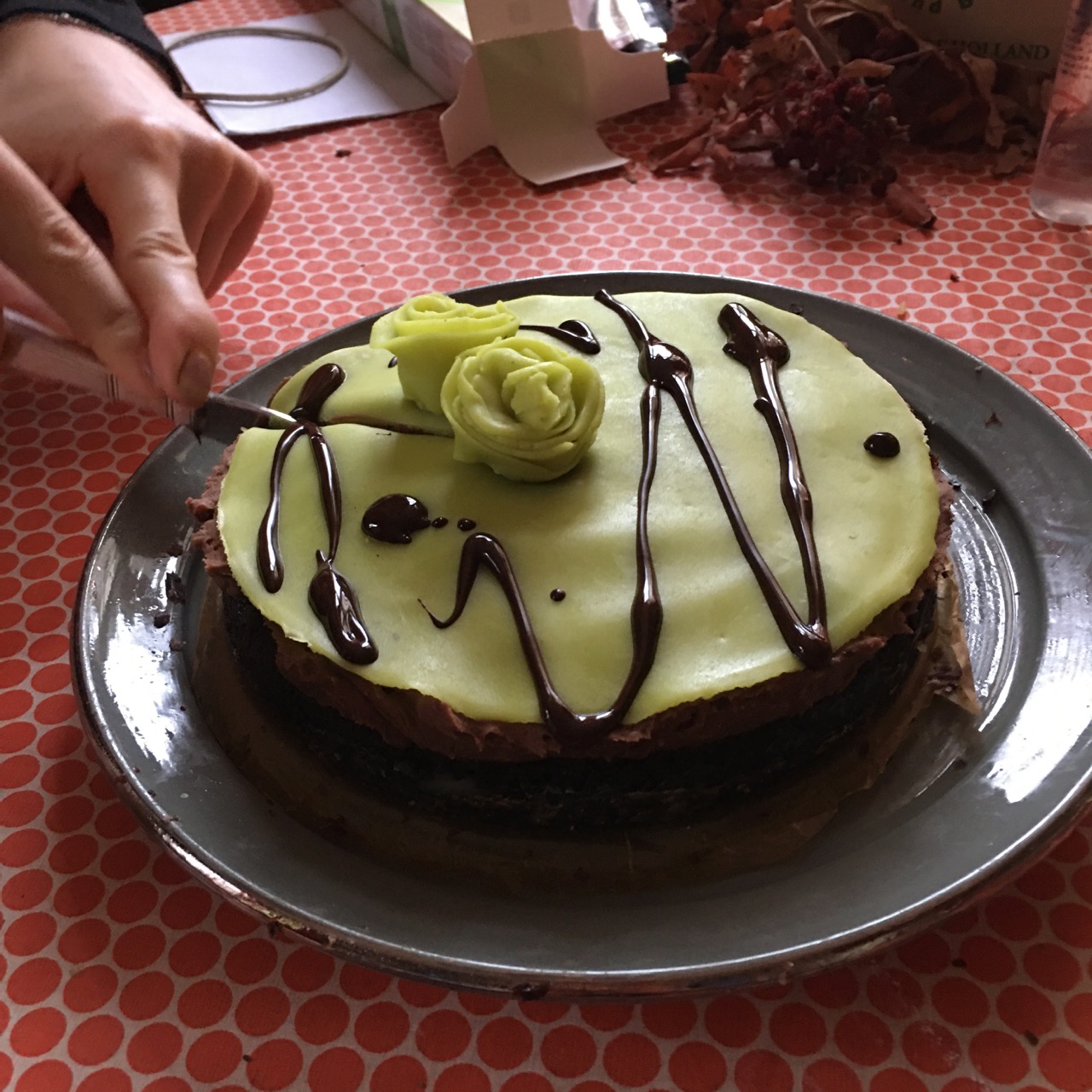 Gyllene flädersaft och köpt rosa saft ( som tydligen innehöll både sötpotatis, morot och stevia. Låter ju skumt men var riktigt god, smakade godis) vi bjöd på jättegod brownie kaka med rosa topping gjord på hallon och kokosgrädde.