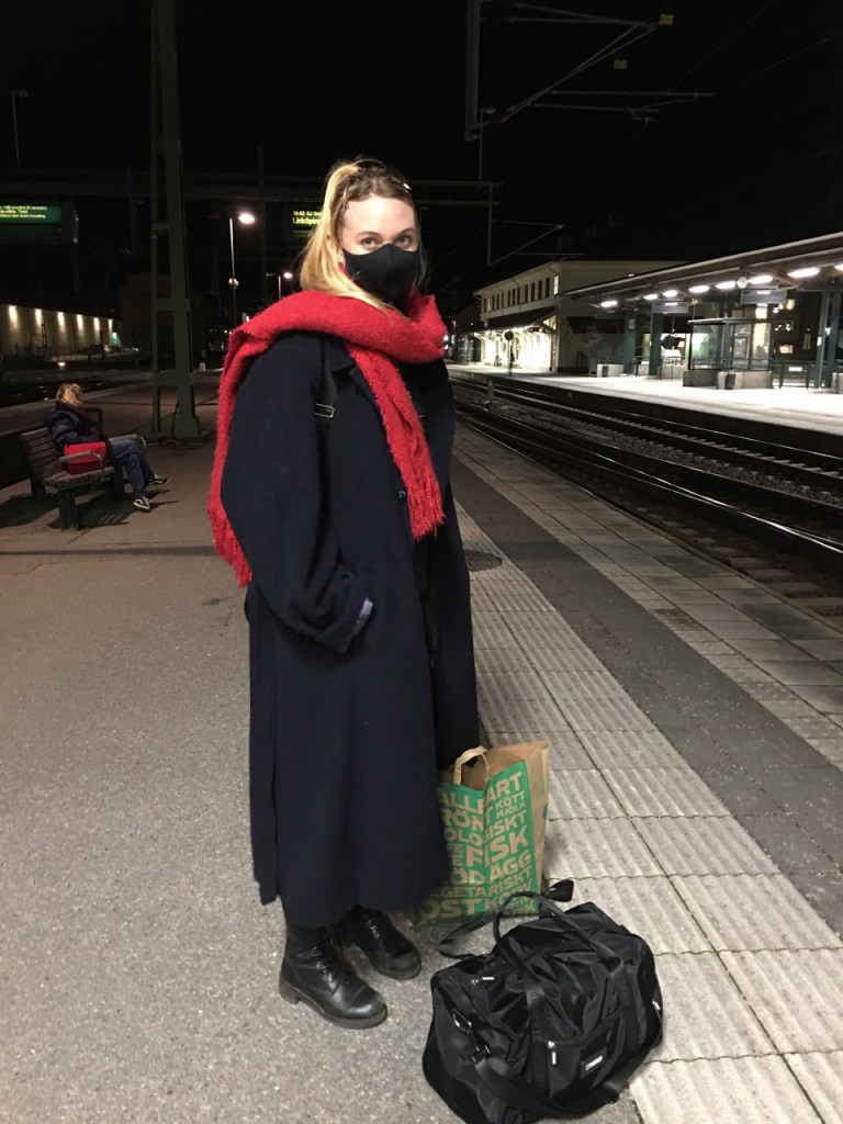 Hej Rita! Så glada att få besök. Men det ser dramatiskt ut! Fashion-dottern kommer i mega-size, svart rock och med svarta tillbehör och munskydd. Så är det att åka kollektivt från storstaden. Så säker det går. Vi tackar för omtanke.