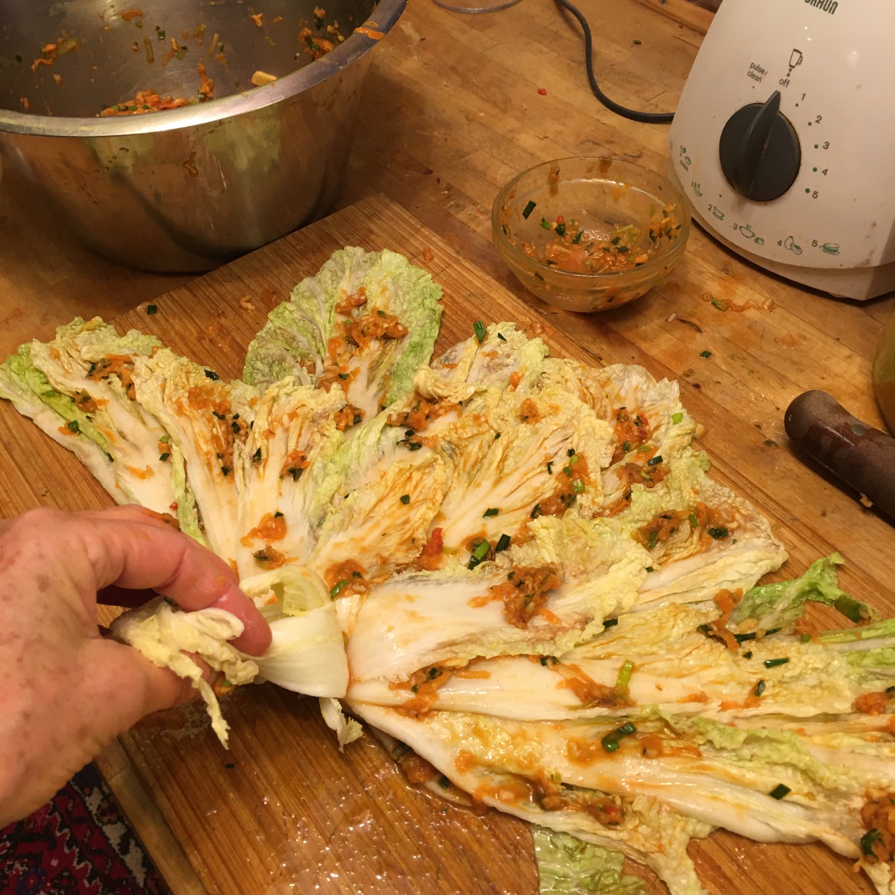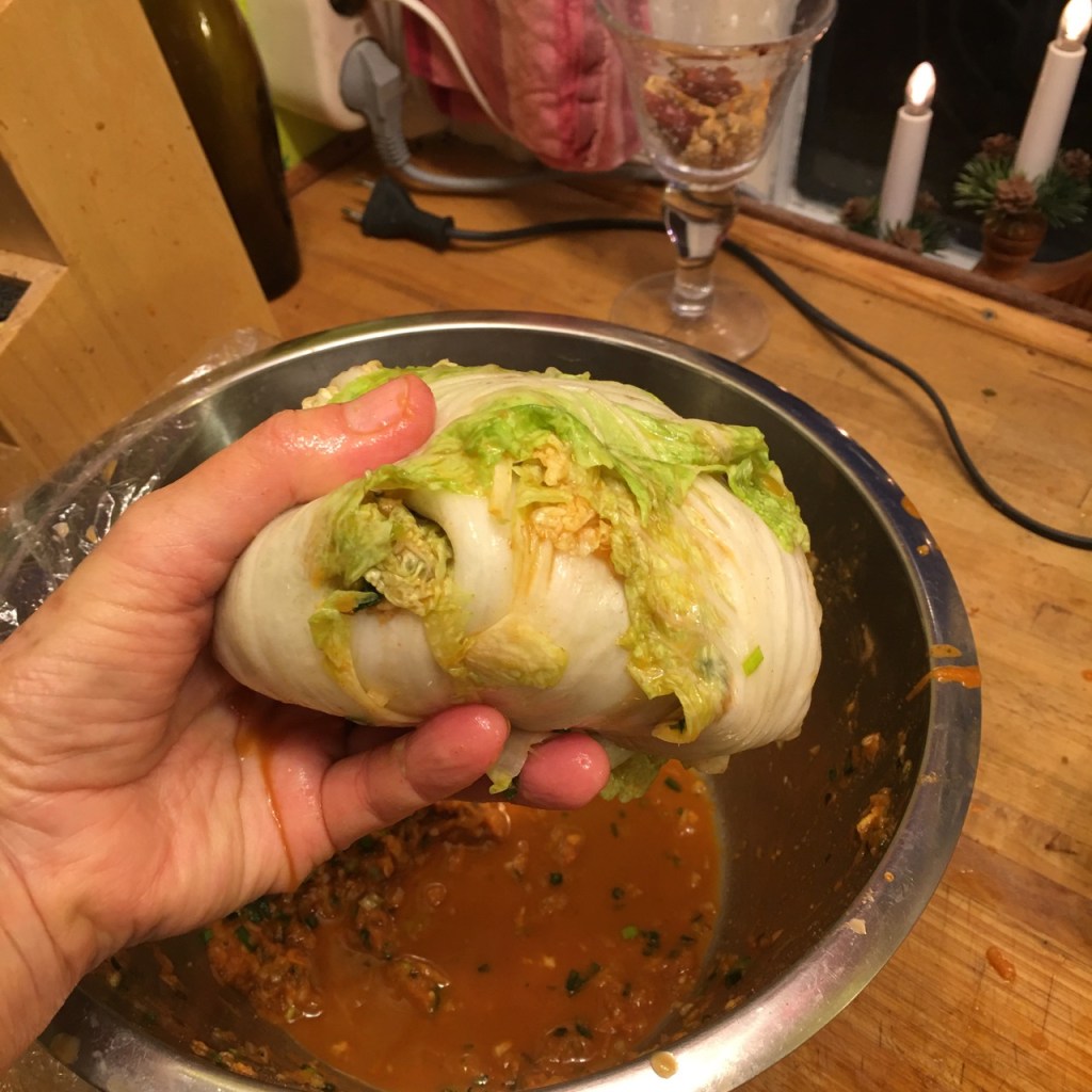 Vi älskar kimchi! Så det vill vi dela med oss av. Vi är ju lite fanclub till tarmbakterier och det finns det ju mycket av i kimchi. Kul att göra själv. Rurik köpte en bok för ett tag sedan, förutom fakta, var där många recept, här ett spännande recept på kimchi-paket! Det vill vi ju göra!
