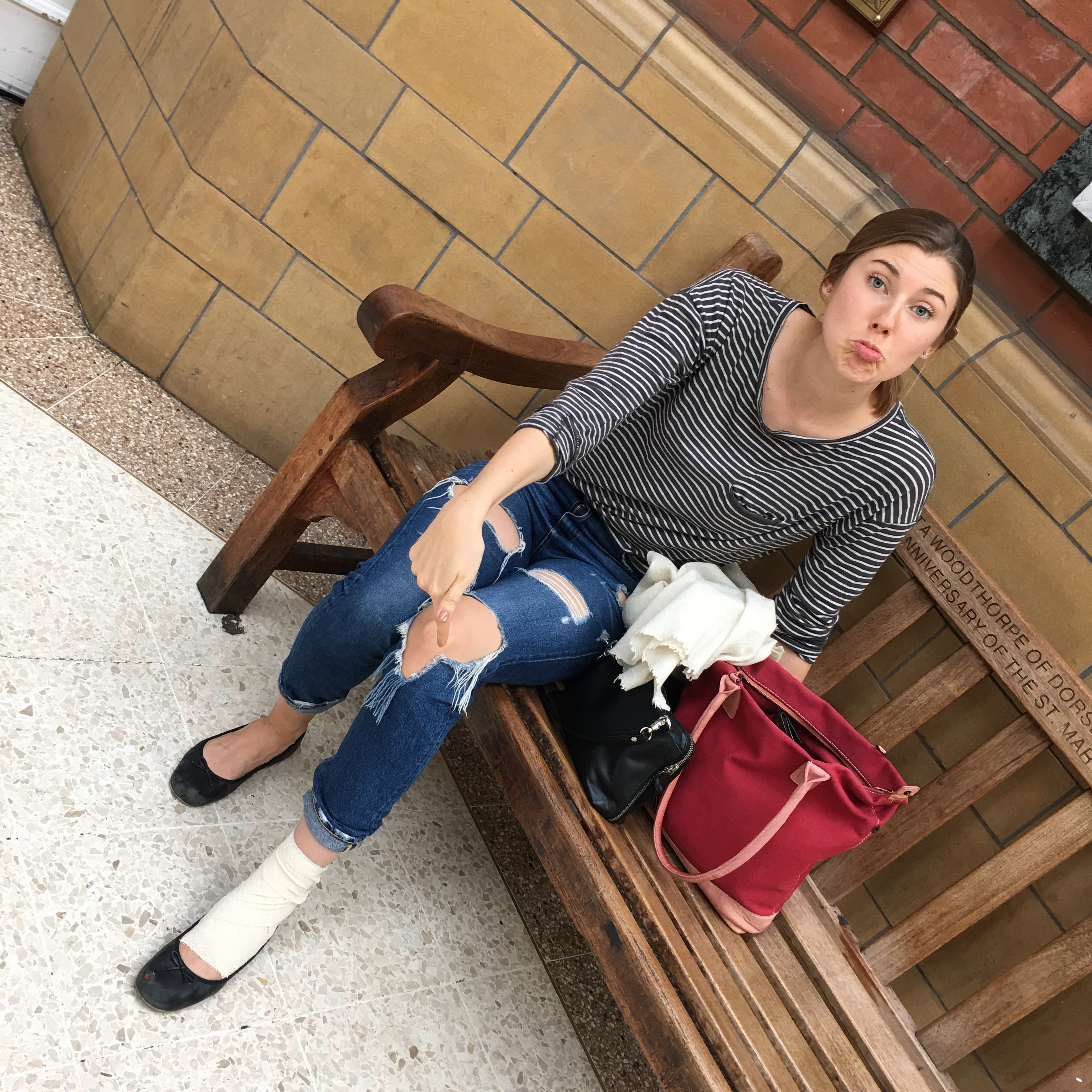 Ella stukade foten igårkväll, så vi har softat. Köpt förband och fikat mycket och länge. Det gillar Ganga oxå. (OBS hålen på Ellas byxor är fashion, inte resultat av nån skada)