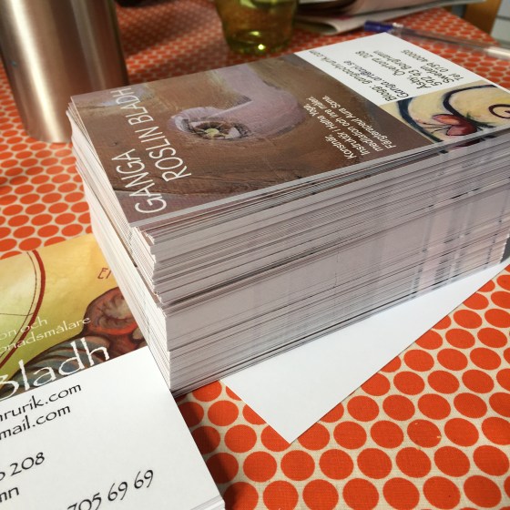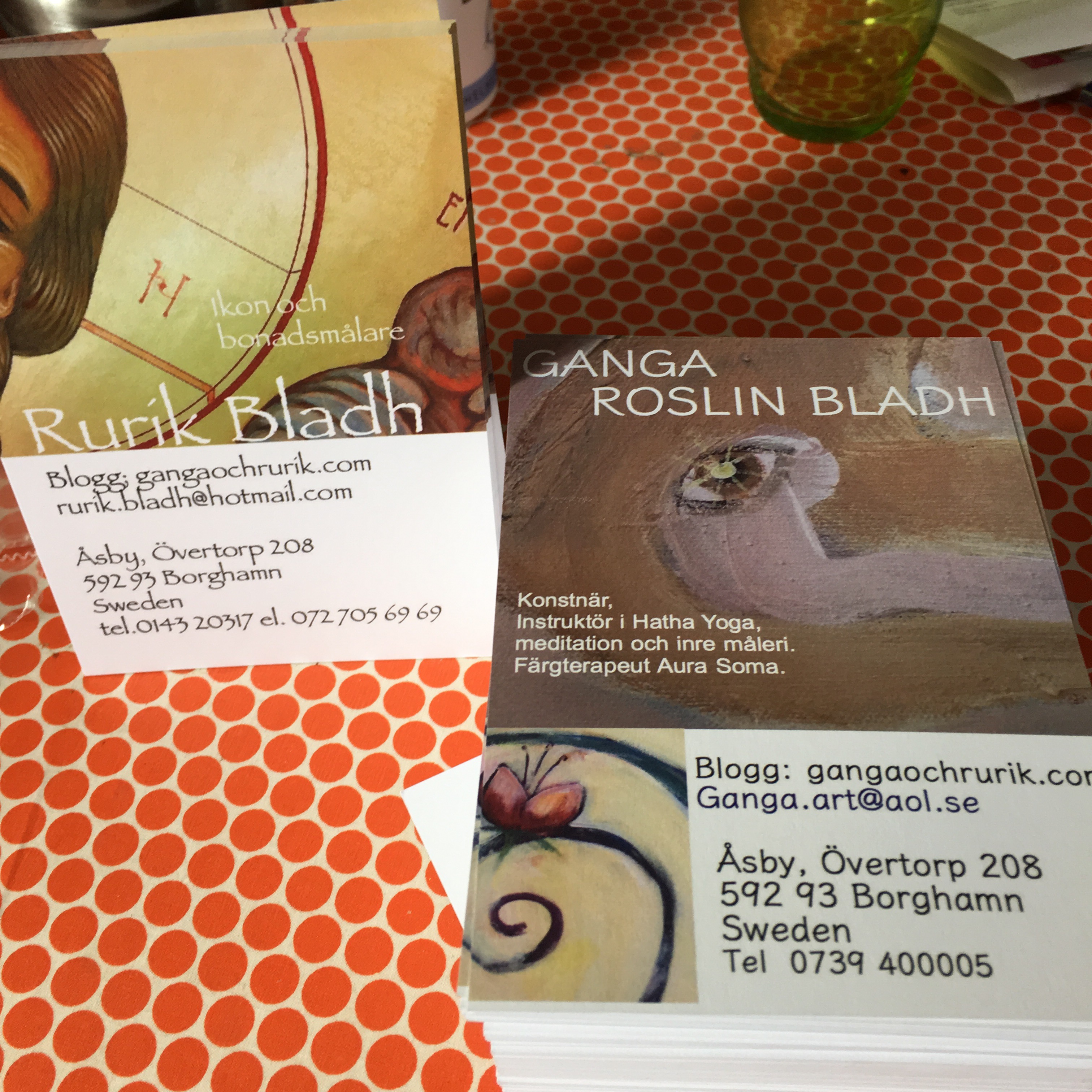 Vi delar på visitkort. Rurik och Ganga. Var sin sida. Men det är bara Ganga som bytt visitkorts -ansikte, Rurik var nöjd med sin sida. Så nu är vi beredda att möta världen igen. En hel, ny,  tung, bibba med nytryckta kort.