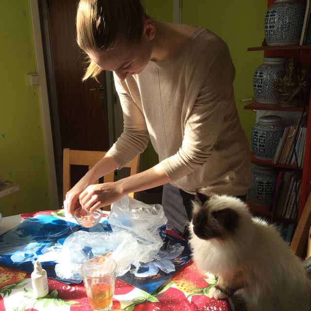 Om vi nu absolut ska avmaska katten ( och det är man väl så illa tvungen ibland, när katten hittar mat ute…) så blir det med avmaskningsmedel som man smörjer genom huden. visste inte att det fanns innan, så det är nog något ganska nytt. Men jag vet inte, det känns inte så bra iheller, nu när man varit med om det här.