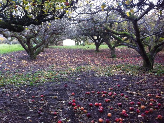 Vi är också väldigt Svenska, det blir mest fallfrukt som hamnar i vår kasse. Det känns mer laglydigt. Men, äpplena bara ligger här, likadant varje år. Ibland känns det som att ”vi” har blivit för rika, så vi inte tar tillvara, ser vilken fantastisk, rikedom ett helt fält med friska, obesprutade äpplen äpplen är.