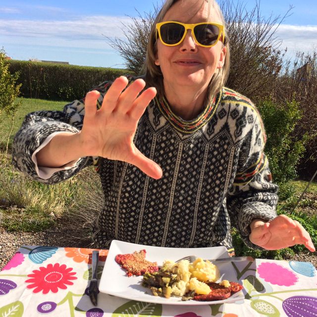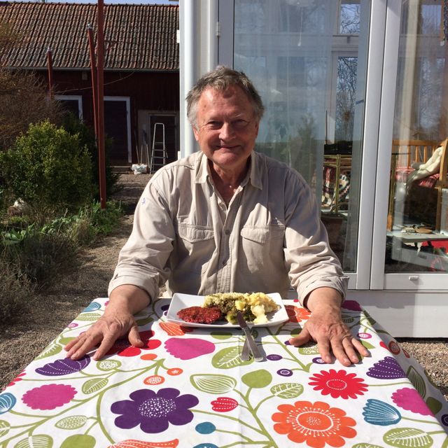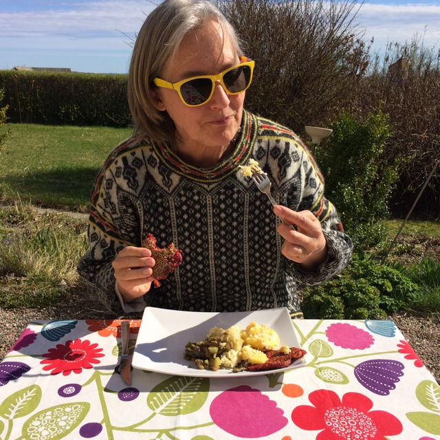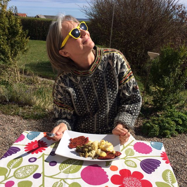 Rurik följer efter med matkorgen. Det blir utefrukost. Helt makalöst. Är det nu en ska låta bli att få klimatångest? Det är liksom för skönt för att klaga. Det är ju underbart i detta nu.