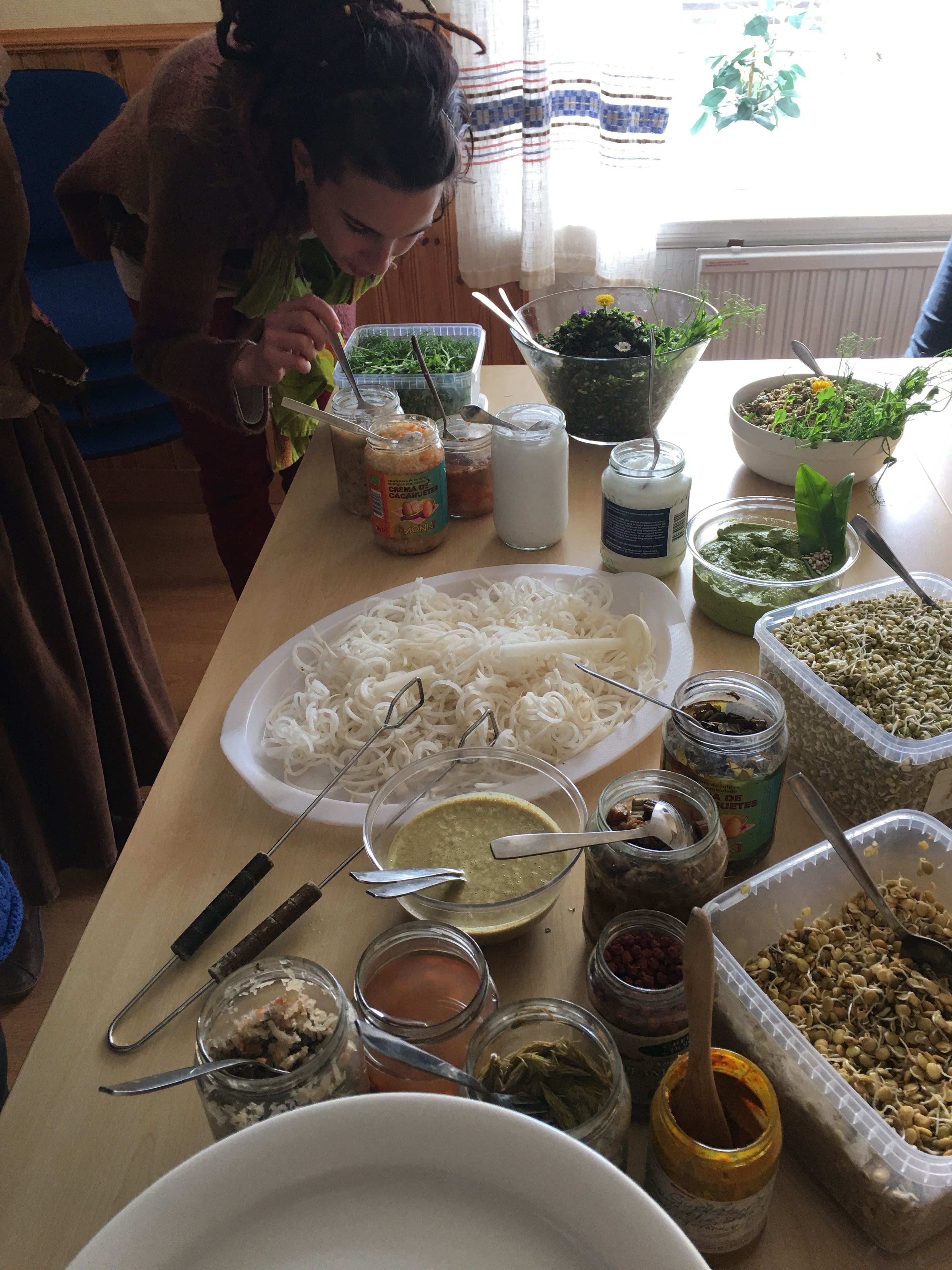 Det blir mycket som är annorlunda med den här typen av ”matlagning” -mycket mjölksyrat, groddat och vildplockat. Att använda spisen är ett okänt begrepp. Basen är istället den mängd av burkar och lådor med torkat plockat o syrat. Maskiner som mixer och juicern är flitigt använda i stället för spis.