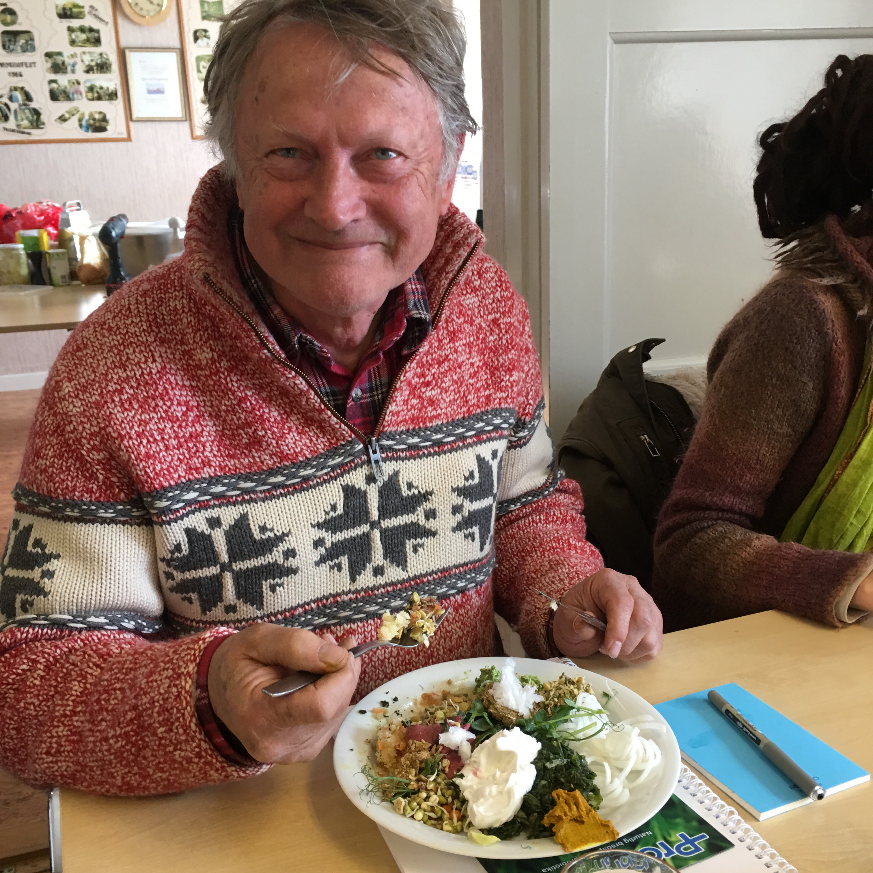Som avslutning bjuder vi på receptet ( som kan varieras i oändlighet efter vad som finns hemma) Schnitzerkost: groddat bovete, andra groddar, rivet äpple, riven Ingefära, hackade gröna blad, citronjuice, blötlagda russin m spad, alger; askofyllum nodosum, linfrö och lingon/blåbär. En komplett måltid i sig till frukost, lunch och eller middag.