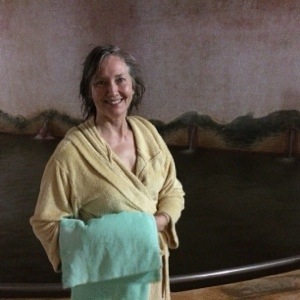 Det är första gången jag badar i en varmkälla, har alltid drömt om det, så det är lite högtidligt!