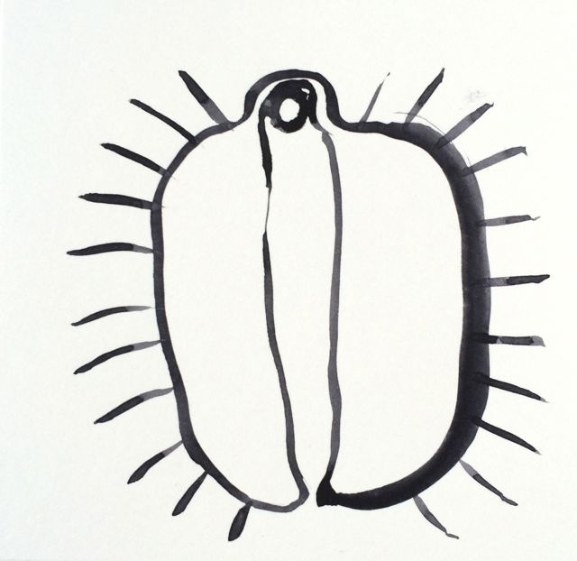 Mycket konst funderar som antenner. Kostnären tar in och tolkar något, det blir så oavsett om man tänker på det eller ej. För mig känns fästingen symbolisk, liksom muttorna (fast fästingar är läskigare), som för tillfället allt som oftast vill vara med. Fästingen är en äldre bild.