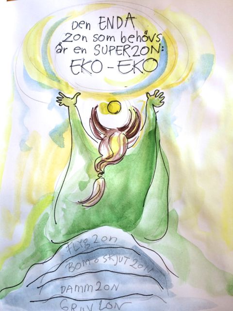 Om man tar bort flygvapnet och militärövningarna helt och gör allt till en TYSTZON. Om allt blir fredat från det som inte är i samklang med hållbart ekologiskt samhälle…. med stora skogar, vatten och byar -skulle det kunna bli ett EKO-LOGISK frizon. Istället för att utländska företag sög ut bygden…. skulle det kunna dra massor av den nya tidens turister. Som vill uppleva natur, frid, ren luft och rent vatten.