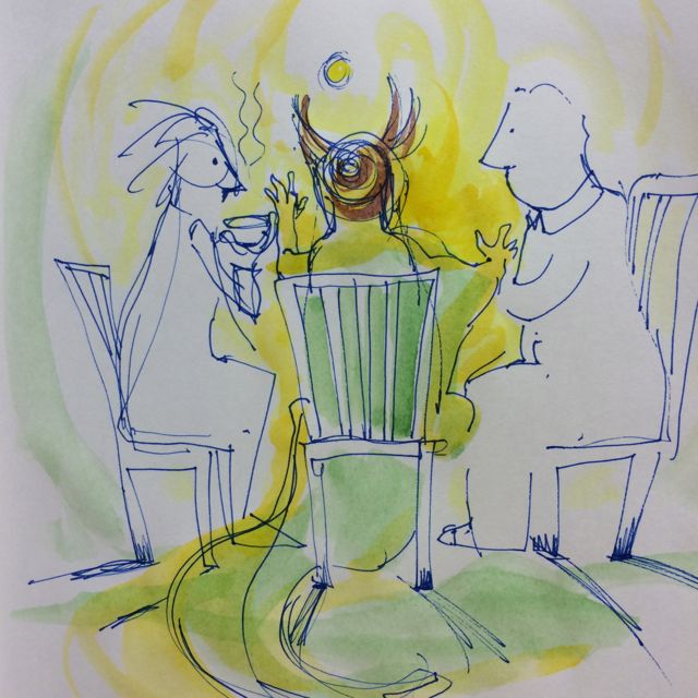 Det var då som ett skimmer tog sig in i vår stund med morgonte. Vem var det som pratade egentligen?