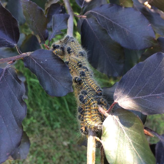 ….i alla fall är det det vi tror. Att det ska bli nya fjärilar. ( bäst att erkänna okunnigheten med en gång.) Men, de satt ju på en annan gren i förrgår?? Vi tittar på de söta larverna, de sitter tätt, alldeles stilla. Mätta? Sover? Håller på att förpuppa sig?? tja, vi vet inte, men vi upplever deras trygga förnöjsamhet, där de sitter tillsammans.